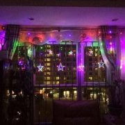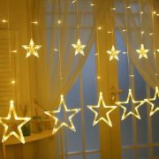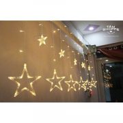 + Đèn nháy mành dạng sao sau khi giăng ra như hình: Bề ngang 5M, gồm 12 sợi buông xuống so le xen kẽ, mỗi sợi dài 0,65m và